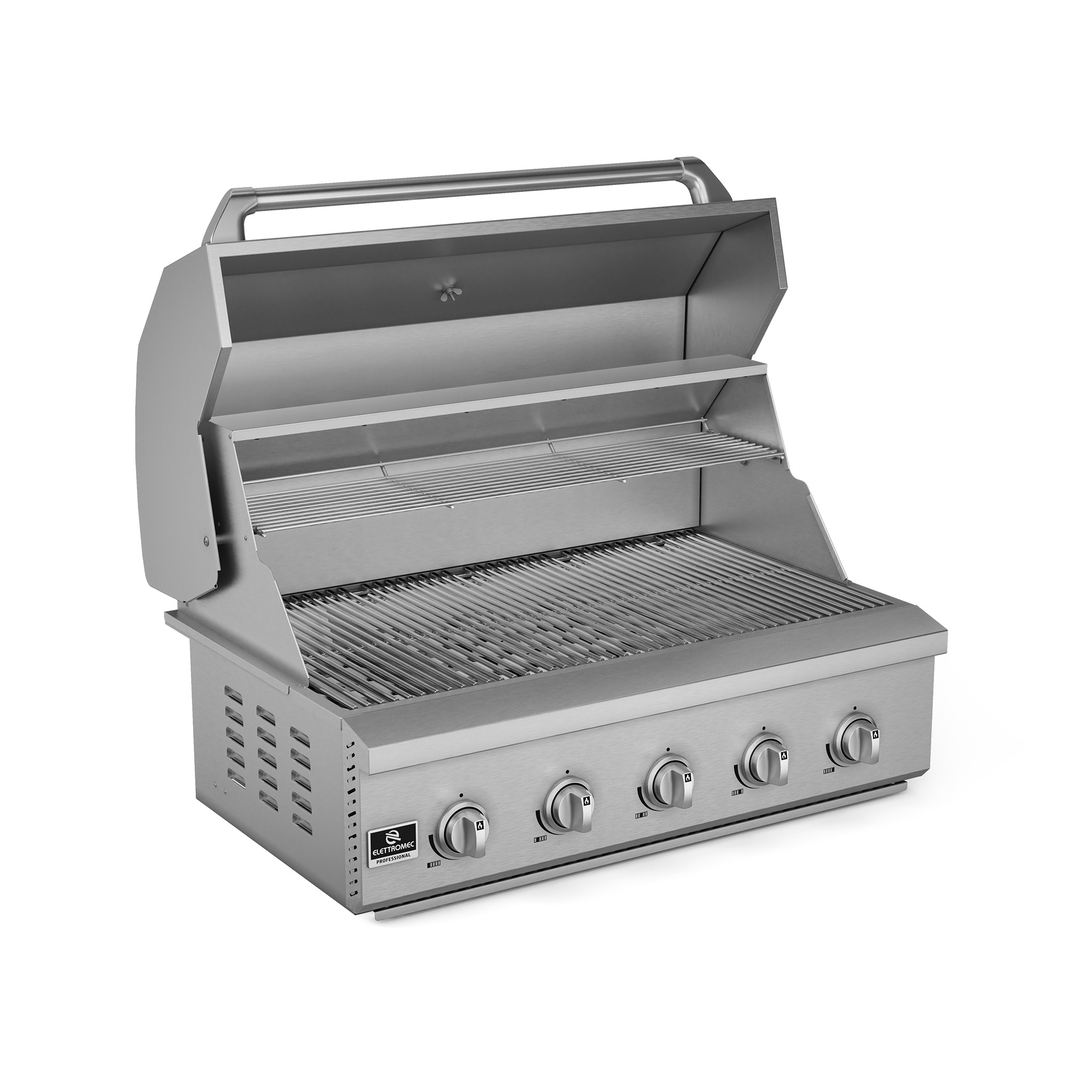 Robusta e elegante, a Churrasqueira Professional de 36 polegadas é ideal para compor áreas gourmet sofisticadas e funcionais. Com funcionamento a gás e 5 queimadores, incluindo 1 infravermelho, apresenta alta potência e durabilidade, podendo ser combinada com as Coifas e Dominós da linha Professional para maior praticidade na cocção de grandes preparos.