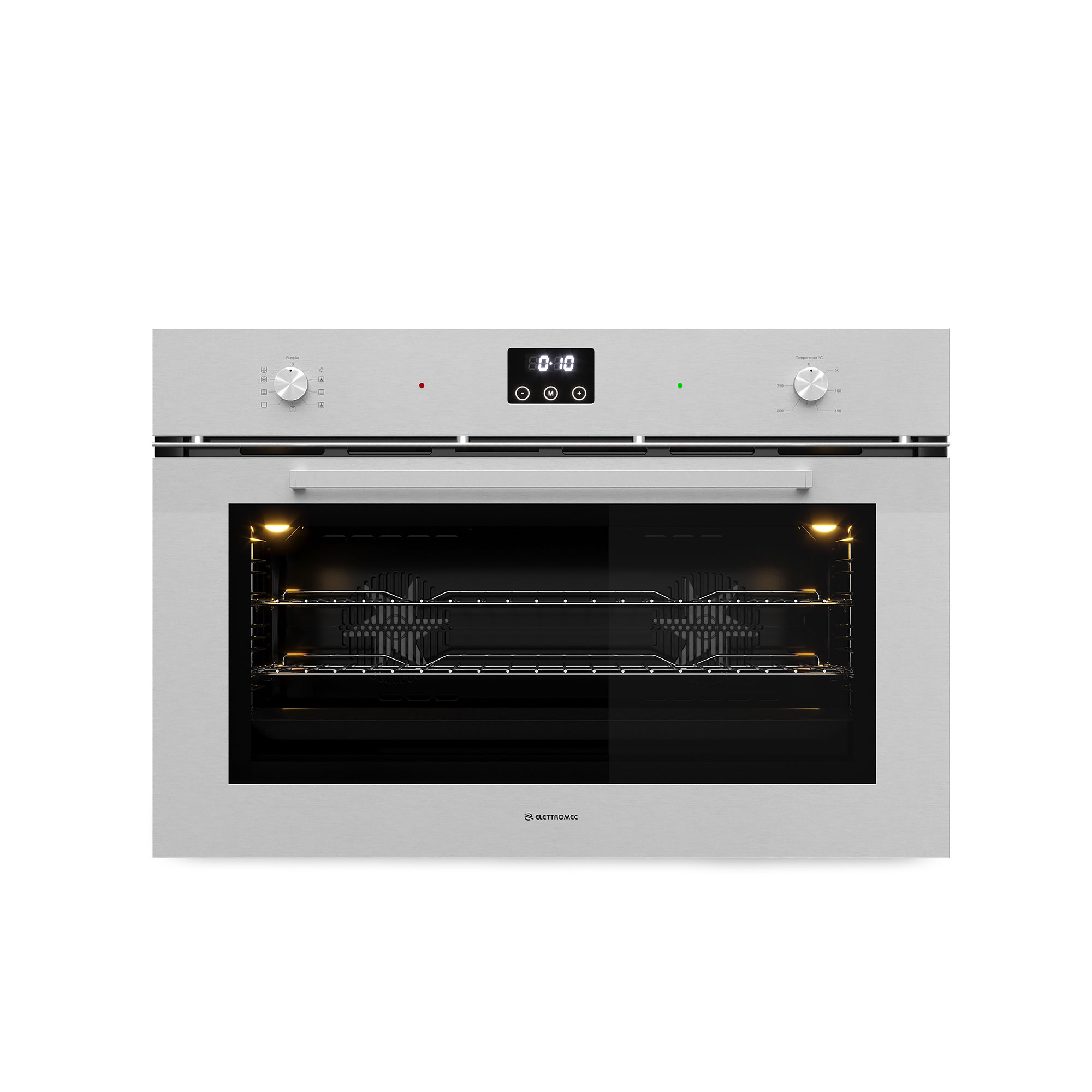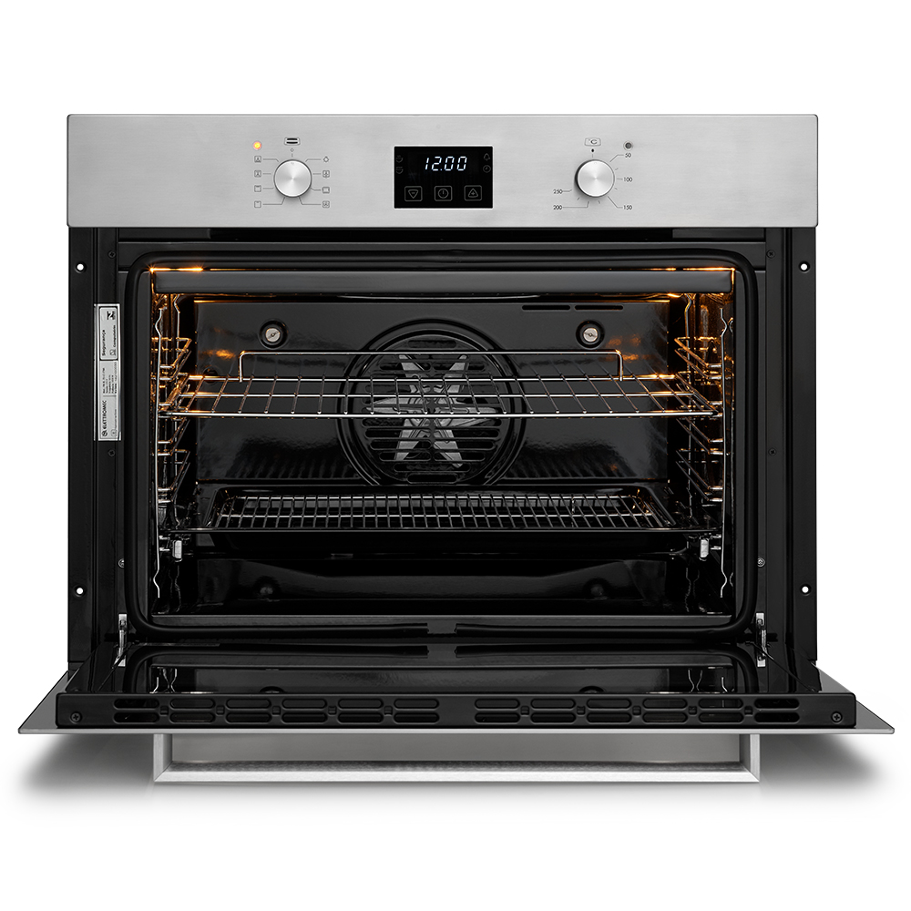 O Forno Luce Multifunção Eletrônico 75 cm possui acabamento em inox, grill elétrico, comando touch digital direto no vidro, três opções de timer e 11 funções, sendo 8 de cozimemto.